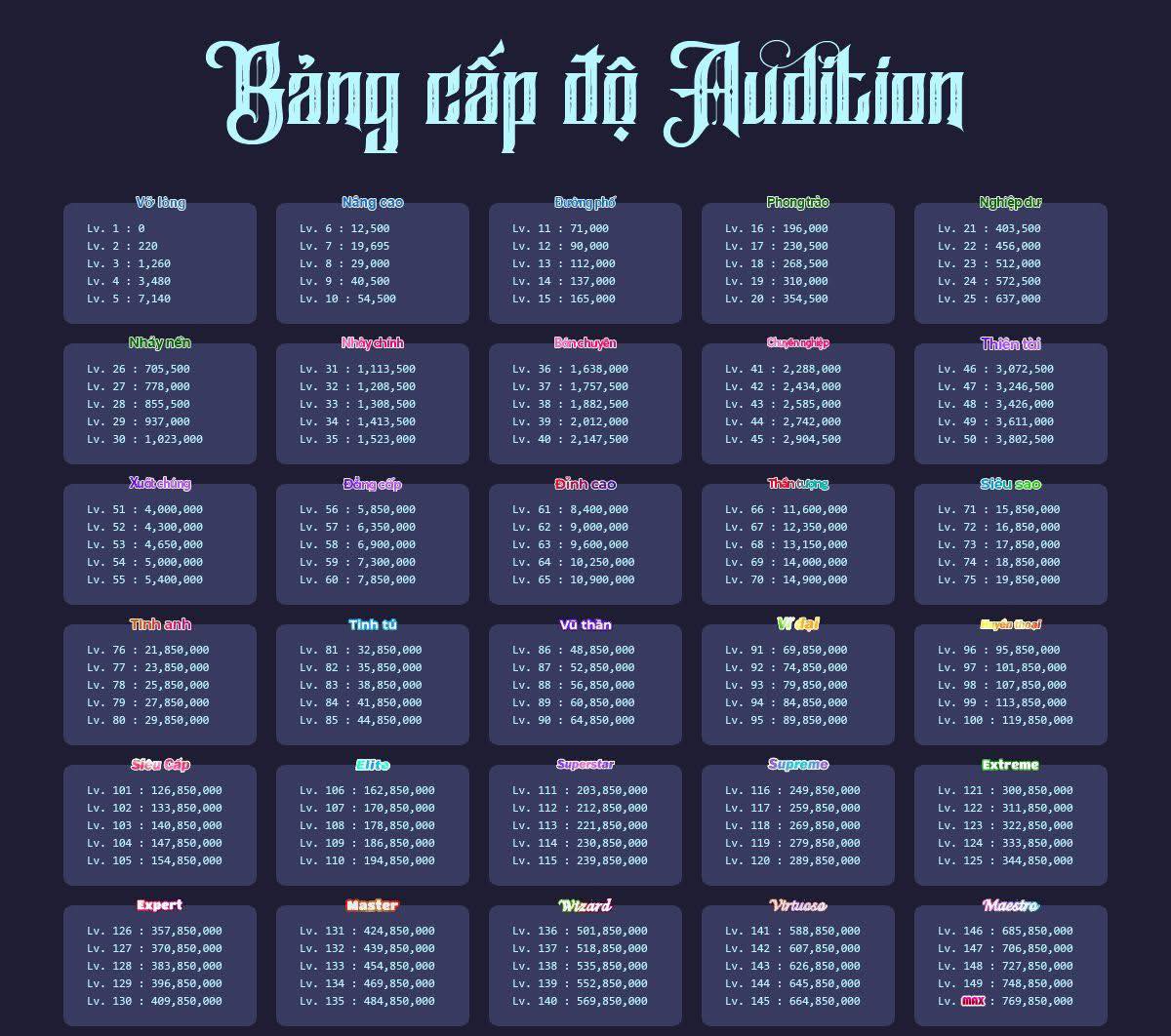 Nhập lv hiện tại của bạn và lv bạn muốn up lên để hệ thống tự tính giá cho bạn nhé